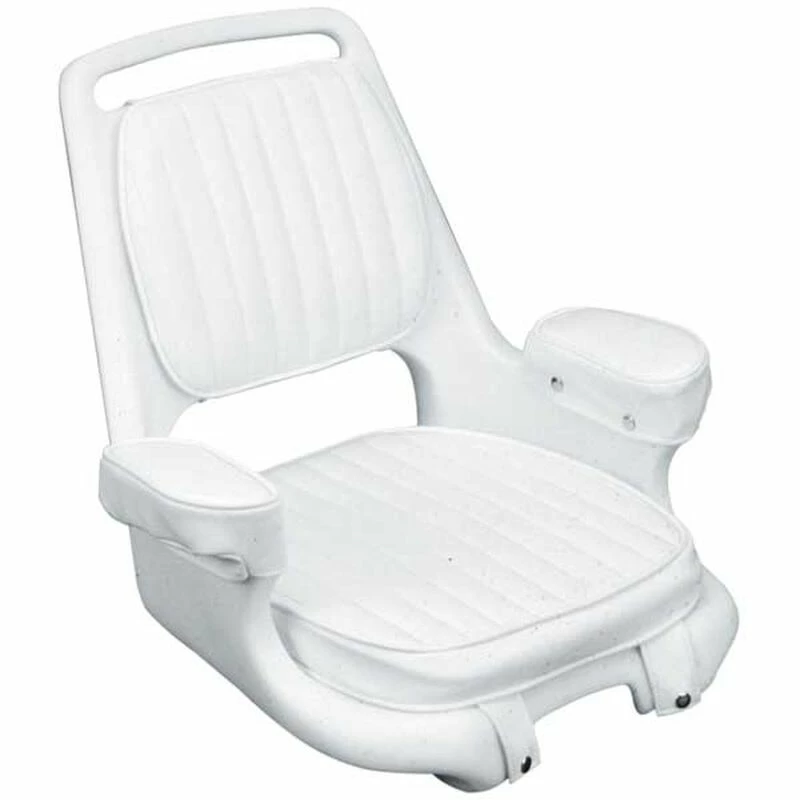 UV-resistant, marine-grade vinyl standard and innovative design in every chair package, meeting and exceeding H-31 specifications. All rotationally molded seat packages include durable, black, injection molded, mounting platers for use with any slider or swivel that has a standard marine mounting hole pattern. Many other unfinished helm seat designs are also available from Moeller on a supplemental CD.