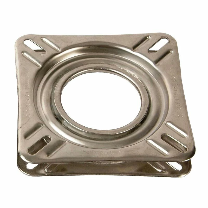 Non-locking swivel rotates 360°, 0-degree tilt. 6-3/4″ square x 1-1/8″ high, with 4 hole mounting pattern. Stainless Steel.
