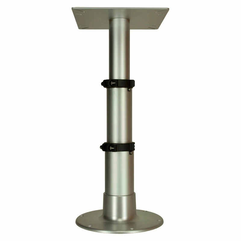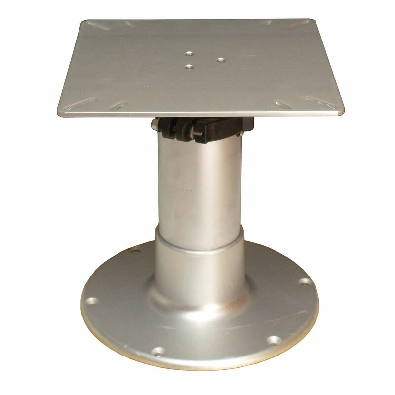 12-1/2″ square table mount. 12″ diameter base with 11″ hole pattern for added stability. Nylon clamping bushings with stainless steel hardware. Air-powered height adjustment, Adjusts 12-3/4″; 20″; 28″.