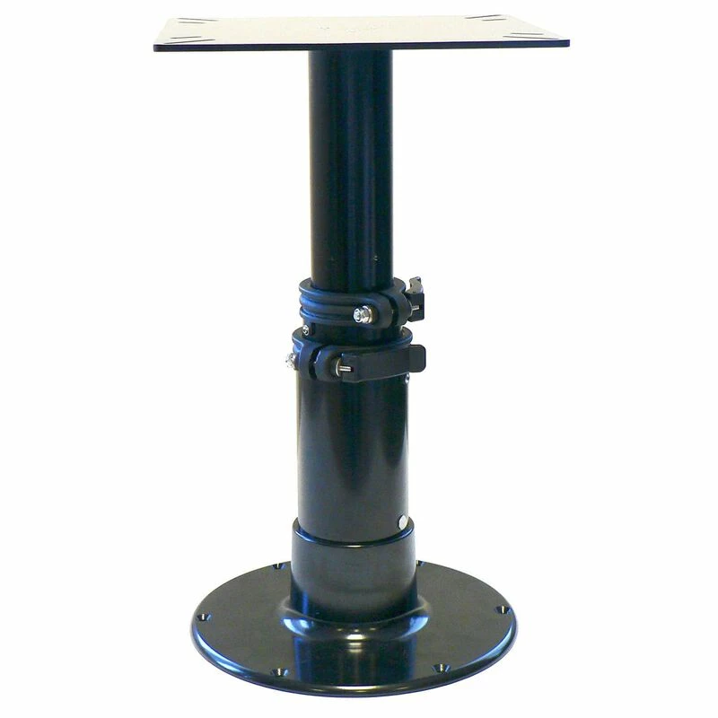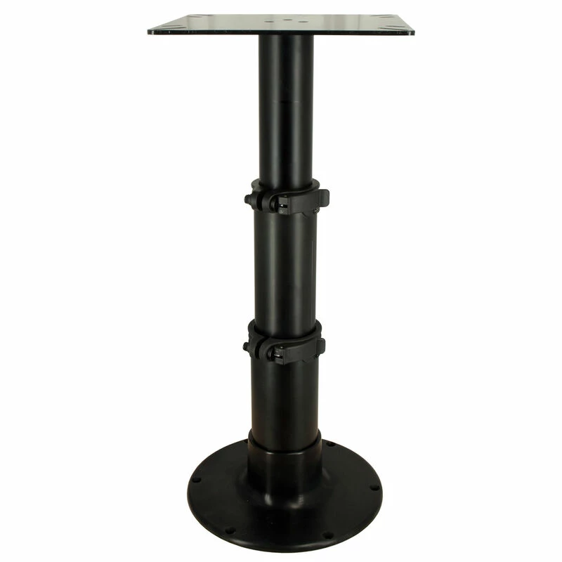 12-1/2″ square table mount. 12″ diameter base with 11″ hole pattern for added stability. Nylon clamping bushings with stainless steel hardware. Air-powered height adjustment, Adjusts 12-3/4″; 20″; 28″.