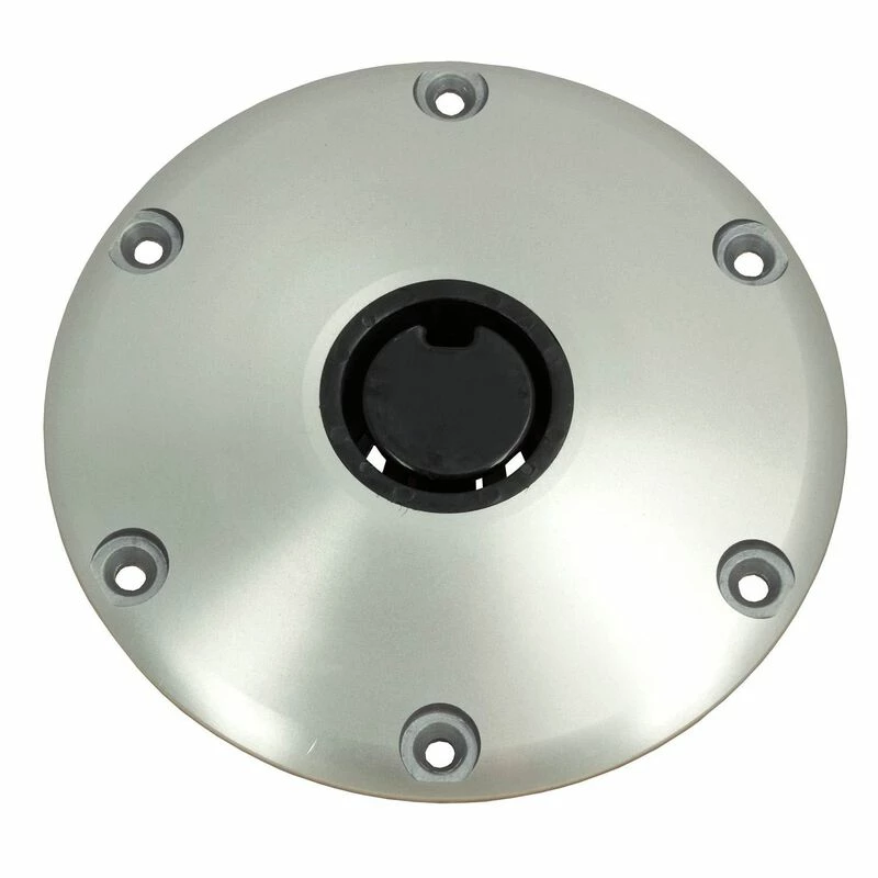 9″ round base with 8″ round mounting hole pattern, high strength aluminum with anodized finish. Below the deck mount requires a 3-3/4″ hole in deck.