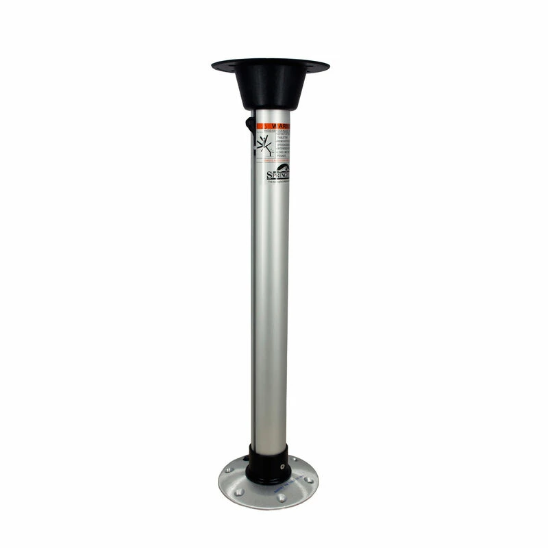 27″ locking Thread-Lock™ pedestal package Package includes: 2-3/8″ diameter post, anodized aluminum. High-strength black plastic table mount. 7″ diameter aluminum floor base with 5-3/4″ mounting hole pattern, satin finish.