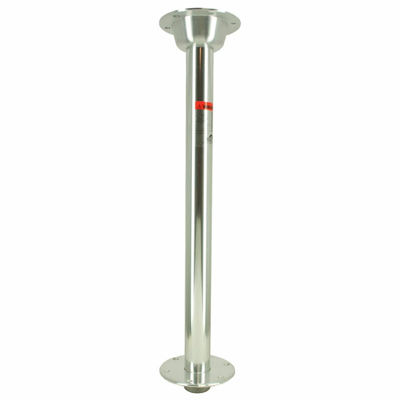 30″ non-locking Stowable pedestal package Package includes: 2-3/8″ diameter post, polished aluminum. High-strength aluminum table mount. 7″ diameter aluminum floor base, polished finish, with 5-3/4″ mounting hole pattern. Requires 3-1/2″ hole in deck.