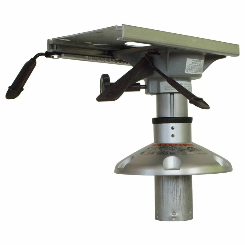 2-3/8″ locking pedestal with 9″ round base, anodized finish. Air-powered height adjustment from 9″ to 12″. Includes locking Trac-Lock™ air-ride slide and swivel. Requires 3-3/4″ hole in deck.