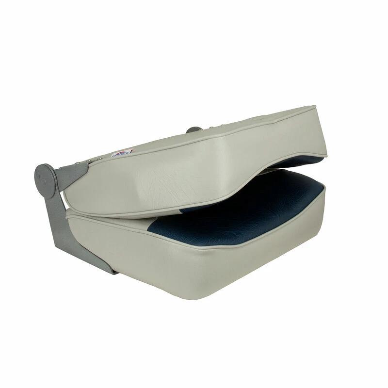 Designed for the plus size body frames. Marine grade vinyl with plush foam padding and heavy-duty powder coated pinch-less hinges. Durable strap with snap keeps seat secure when folded down.