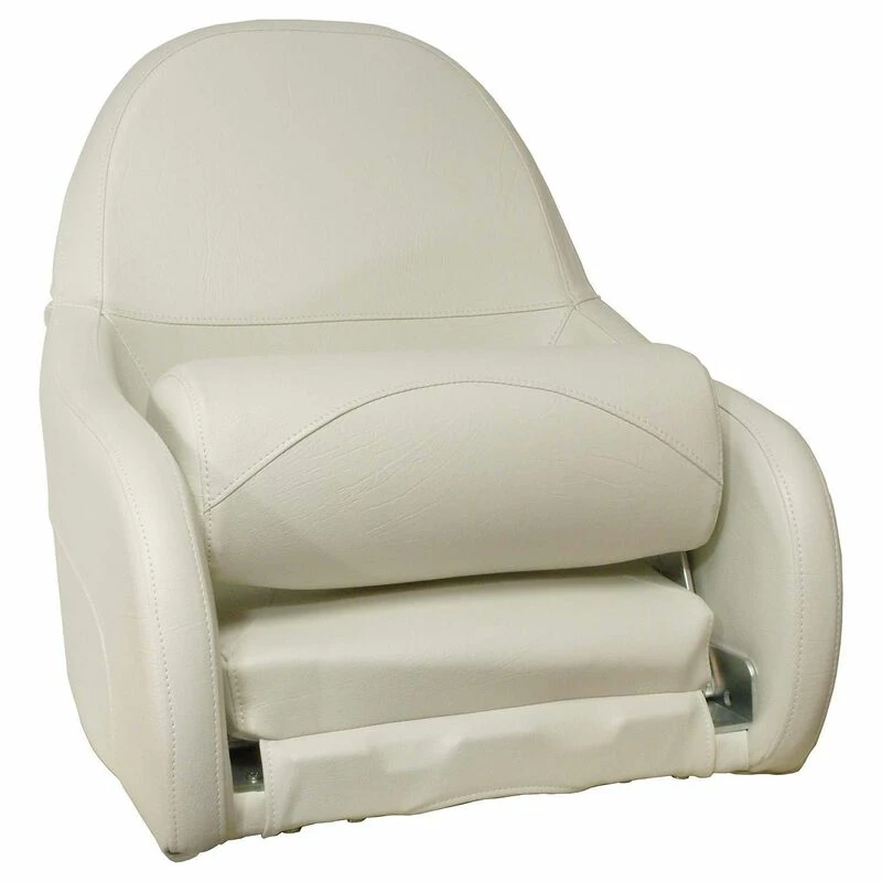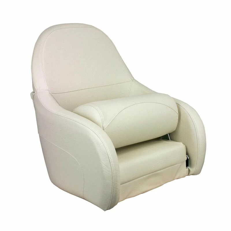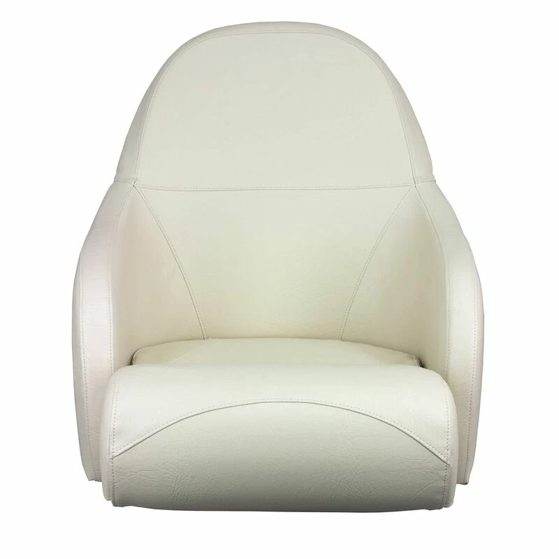 Comfortable runabout seat or flip-up the bolster for standing or leaning position. Roto molded high-strength composite shell with high density foam padding covered in marine grade vinyl with large dry pocket on back of seat.