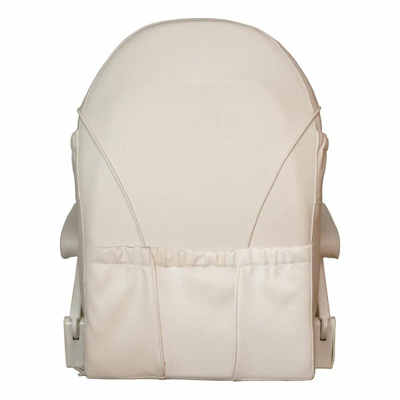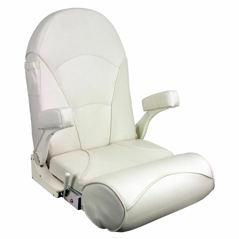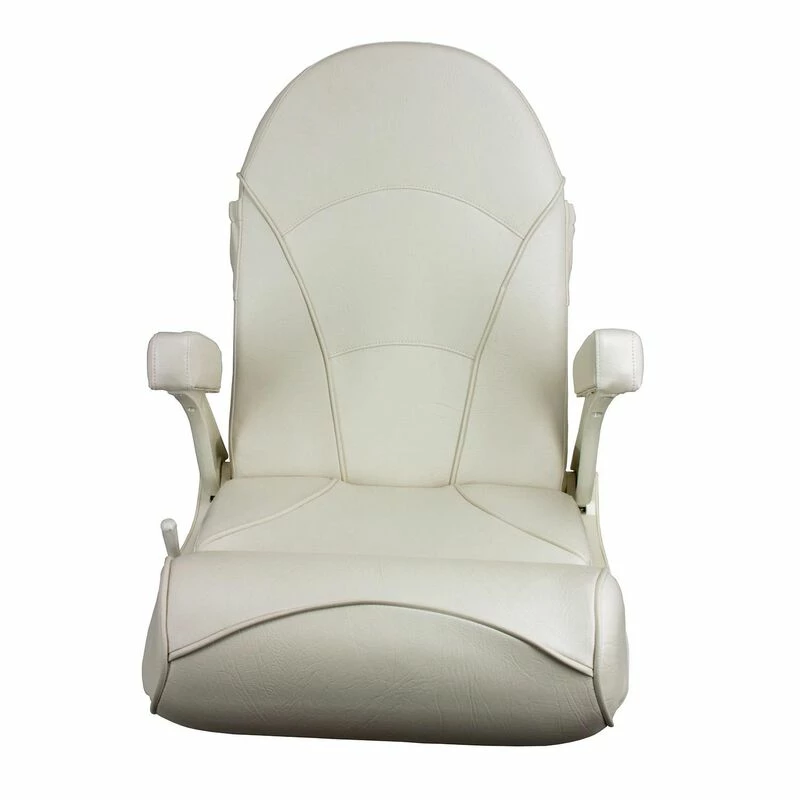 Comfortable full size helm or captain’s seat when flipped down. Flip-up the bolster for standing or leaning position. Armrests also flip-up and out of the way. Heavy-duty marine grade vinyl over plush foam padding. Large dry pocket on back of seat.