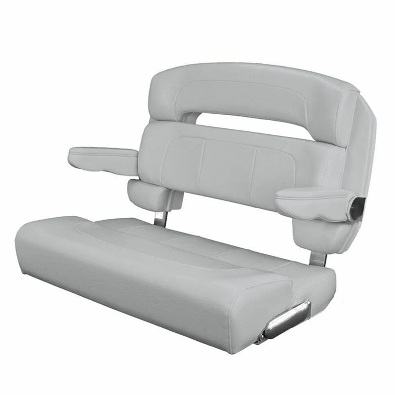 It offers more space for entertaining and comfort. This bench is engineered using only Type-316L marine-grade stainless-steel hardware. It also has a unique shield that secures the bolster in place, which prevents it from flipping down—ultimately eliminating dangerous pinch points. Ideal for boats up to 50′ long. Made in the USA.