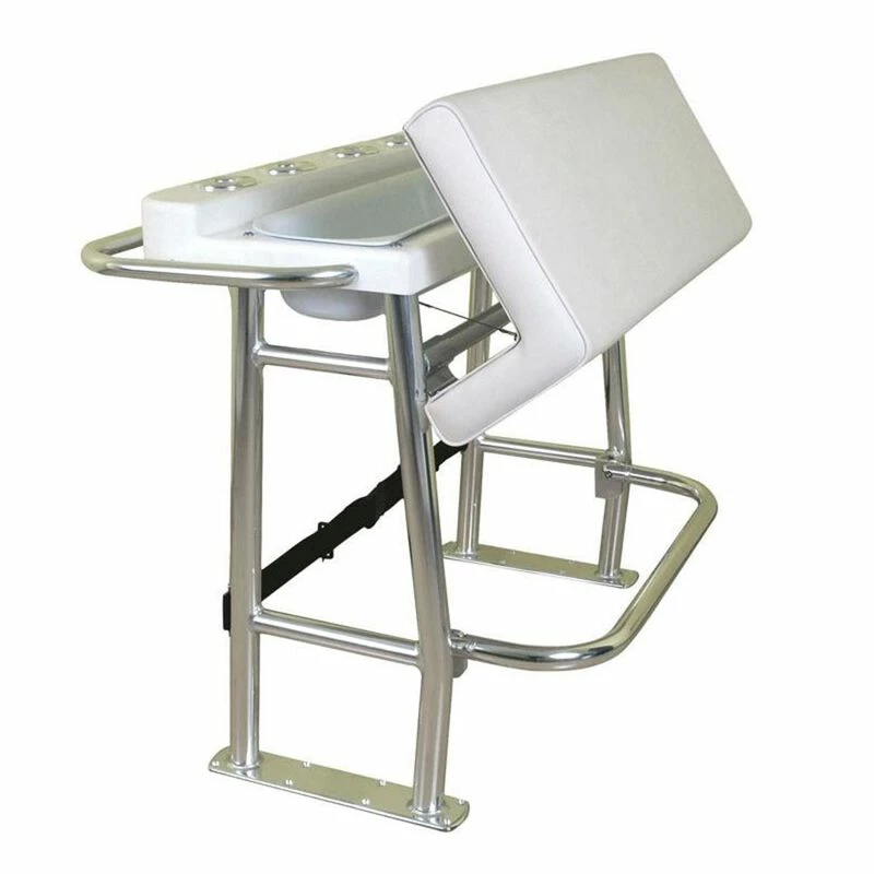 Our easy-to-install leaning post is perfect for retrofitting your boat into a sport fisherman’s dream. Constructed from durable anodized aluminum, this leaning post has all the features to make a great day of fishing, including a fiberglass under-seat storage compartment, hinged footrest, a “white tail” grab rail, four built-in rod holders and storage space for a 72-quart cooler.