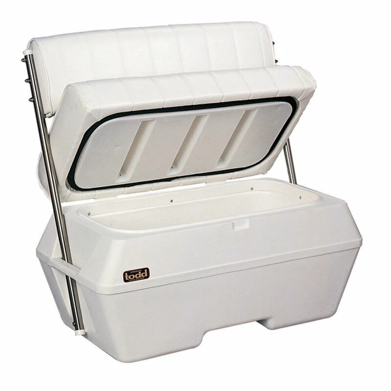 Make the best possible use of space aboard your boat with this rugged, comfortable swingback seat. The hinged lid of the 70-quart container base is ideal for storing anchor tackle, life vests, clothing, etc.