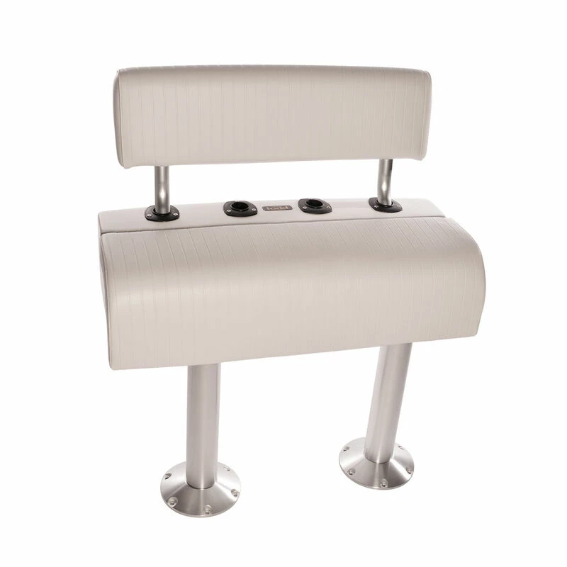 This system allows you to to easily replace old chairs with a new leaning post without removing the existing pedestals. The leaning post features four rod holders, a tufted removable cushion and dry storage under the cushion. The included posts fit over existing 2 7/8″ dia. pedestals and adjust port to starboard from 21″ on center to 28.5″ on center to fit in the same location as your old posts.