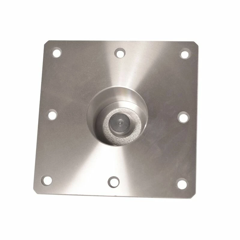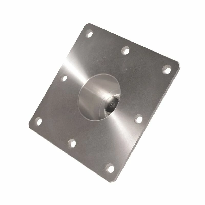 All parts made of high grade, anodized aluminum. Bushing at bottom of post is threaded and screws into a threaded locking mechanism in the floor plate for a tighter, wobble-free fit. Post has tapered plastic end caps to eliminate corrosion. Floor plate can be recessed for flush mounting.