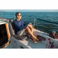 Our best-selling line of high value deck chairs just keeps getting better! We’ve improved the seat and back with durable plastic foundations instead of plywood, so they won’t rot or warp. Resilient foam cushions are now contoured for enhanced comfort and covered with water-resistant vinyl. Extensive new QC measures have been put in place to ensure best in class performance. Frames consist of stout 1″ diameter tubing and they include a safety catch to prevent accidental folding. Kingfish chairs are surprisingly lightweight and very stable for use on-board or shore-side.