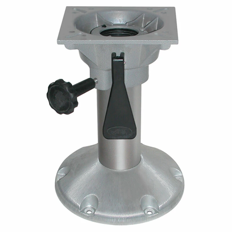 Wise 8WP24-9S 9″ Fixed Height Pedestal is built stout to withstand rough seas. 2 3/8″ diameter thick wall post with 9″ diameter base plate with recessed mounting holes. Seat slide is extruded aluminum and allows 5″ of fore and aft travel. Constructed of extruded and cast polished aluminum. Cast aluminum seat mount locks and swivels 360 degrees with adjustment handle and knob. BIA standard 4 bolt hole pattern fits virtually all seat brands.